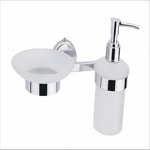 حامل موزع صابون صناعي يثبت على الحائط من YUNWEI، مصنوع من الكروم والمعدن للحمام، حامل سائل نحاسي